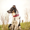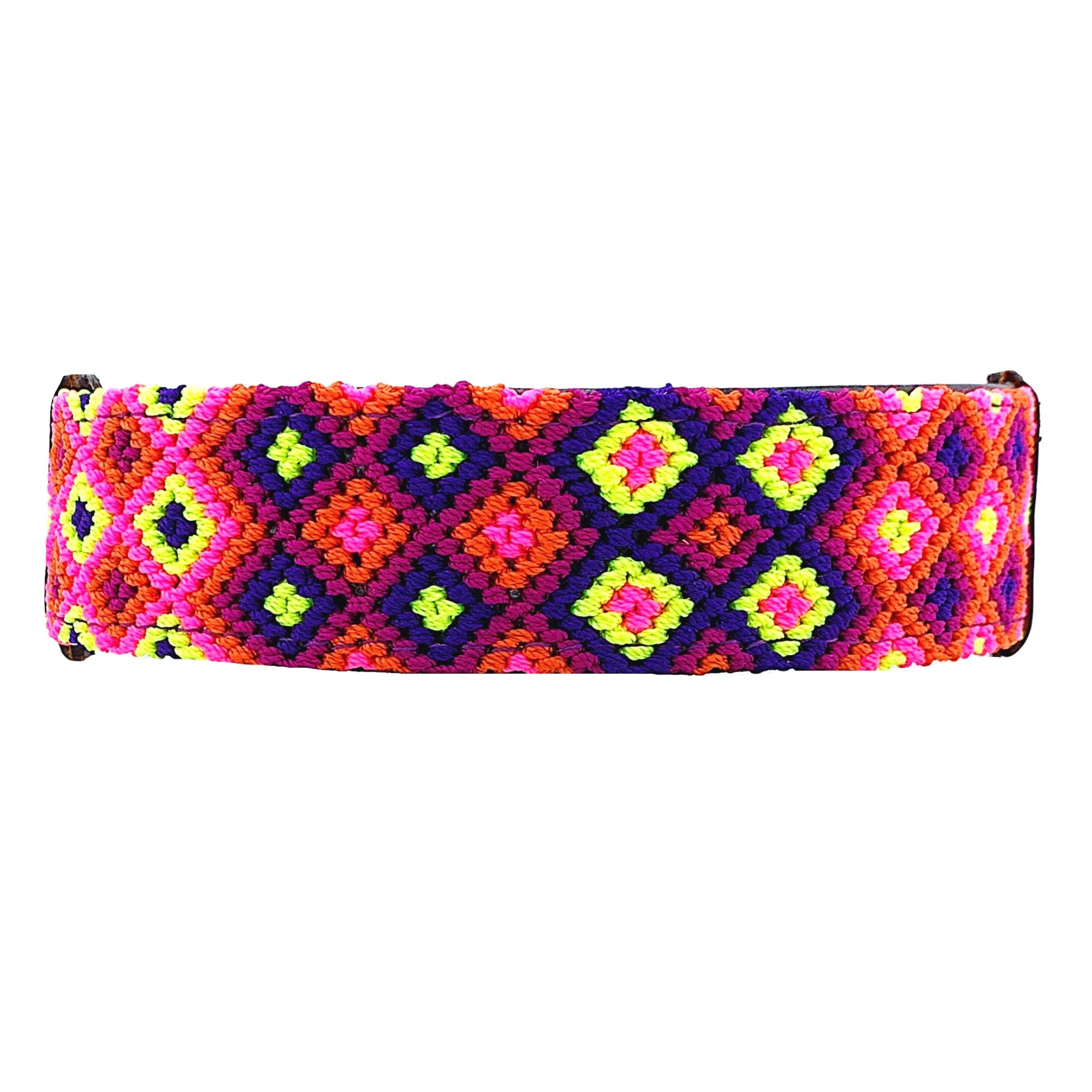 In the Highlands of Chiapas, Mexico, the collar's vibrant textile is hand woven by female artisans using the Maya technique "Trenzado a Mano". The D-ring and buckle are ultra-strong, brass-finished steel. The collar features a padded leather interior for the comfort of your dog and a special ring for the ID tag.