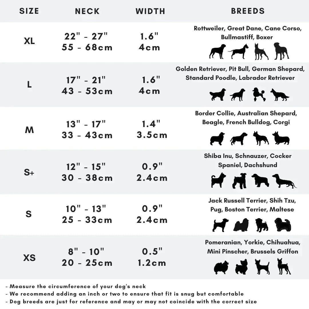 • Size: S+ collar for a 12" - 15" neck; Width 0.9"